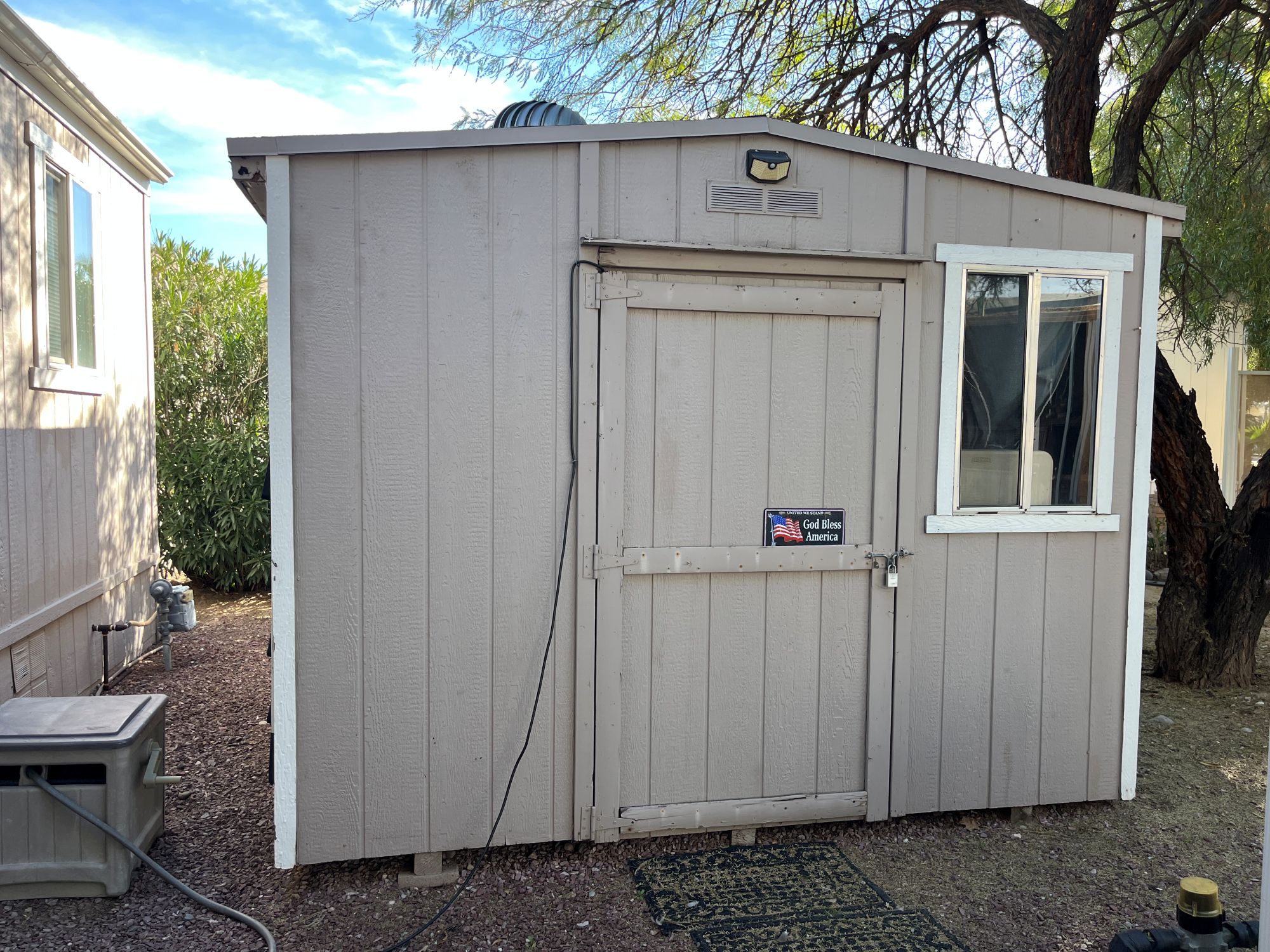 VERY NICE STORAGE SHED INCLUDES ELECTRIC