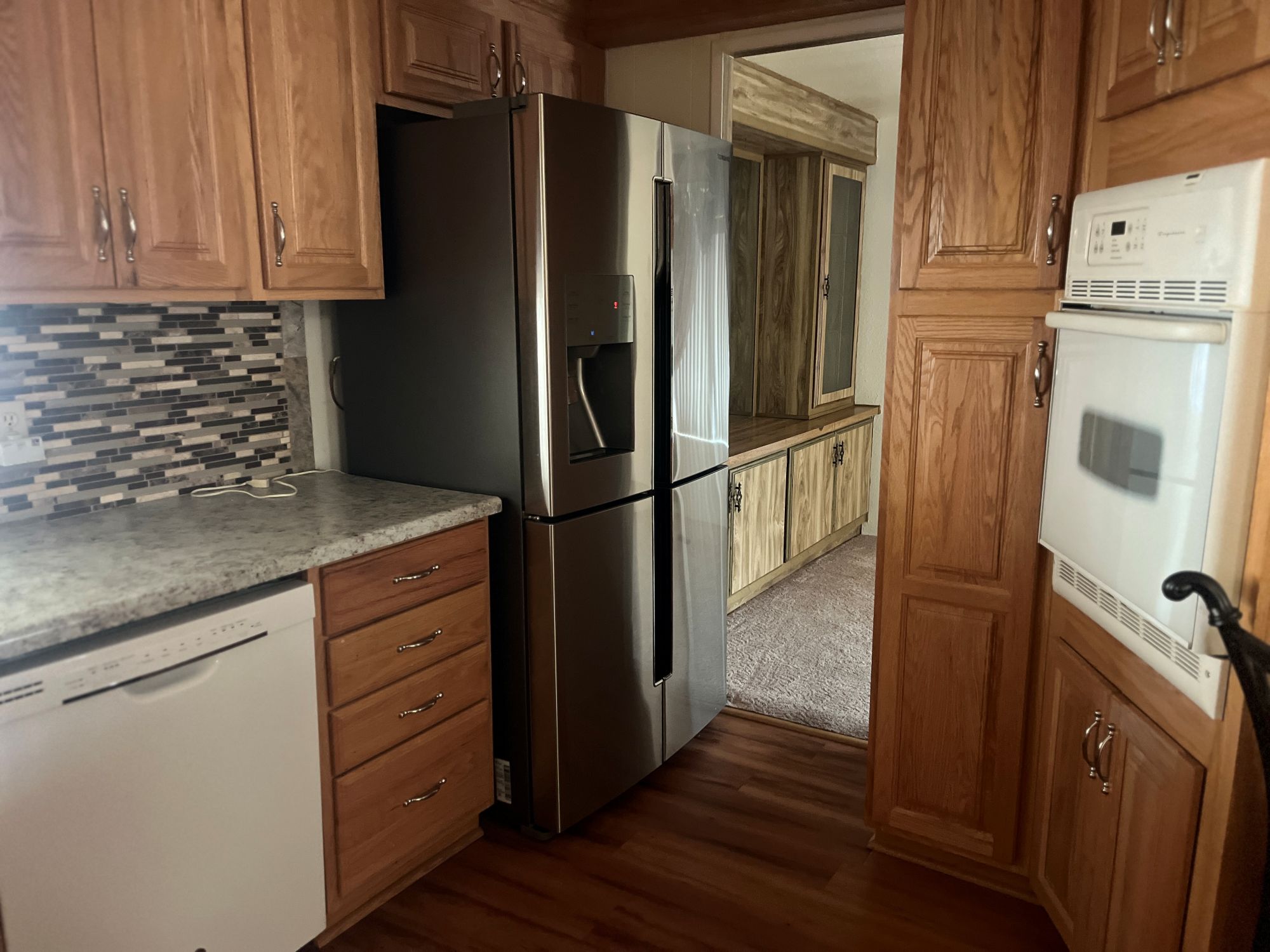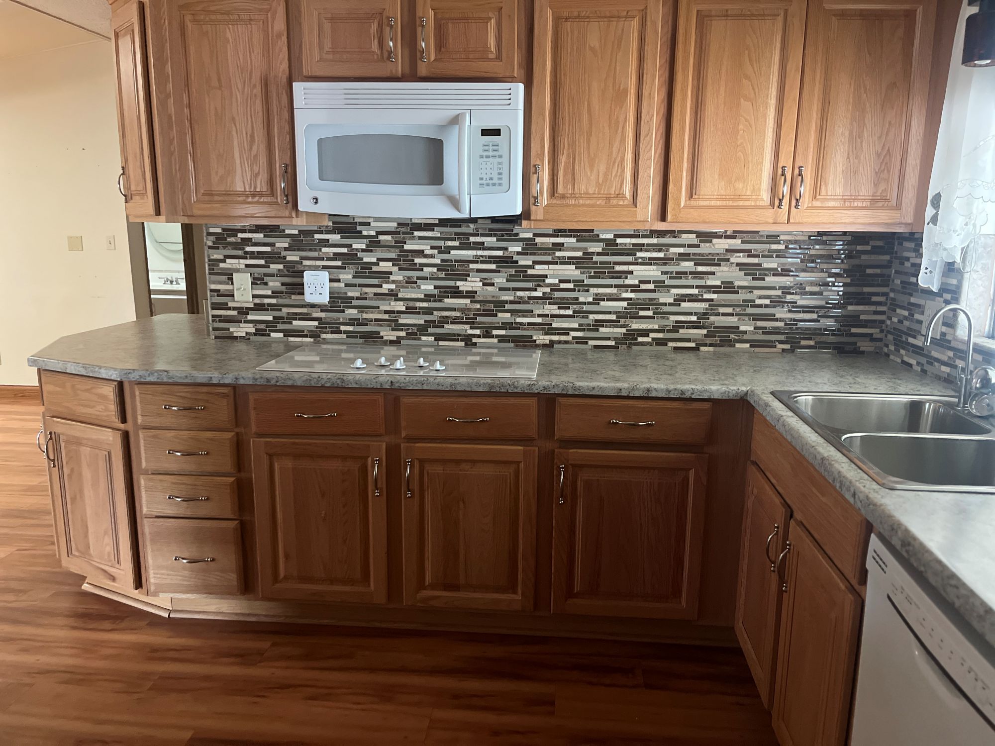 Custom Oak Cabinets, Tastefully Updated Backsplash & Countertops