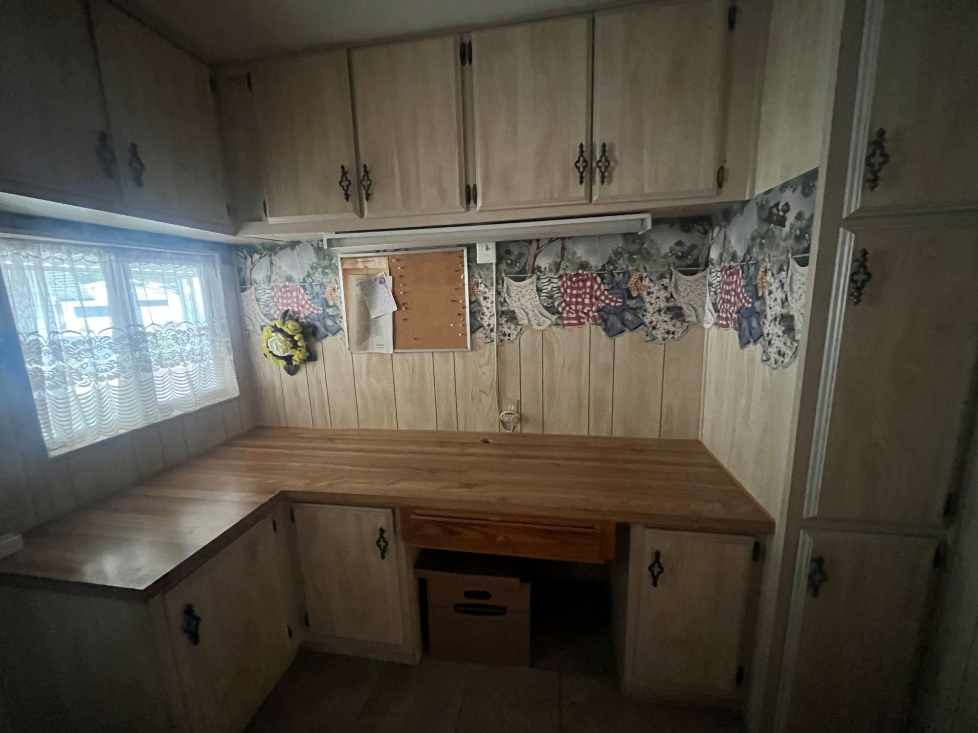 ABUNDANCE OF WOOD CABINETS AND GAS RANGE