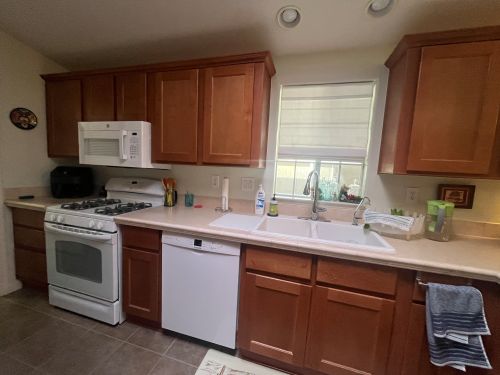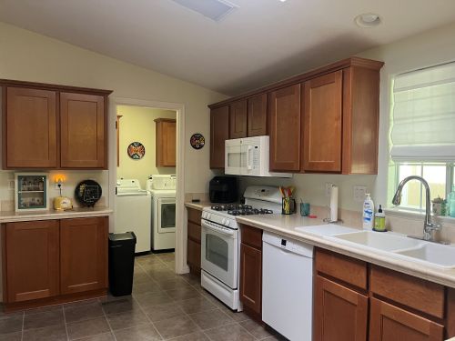 WOOD CABINETS ** WHITE APPLIANCES ** GAS RANGE ** ENORMOUS PANTRY